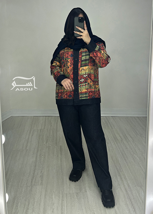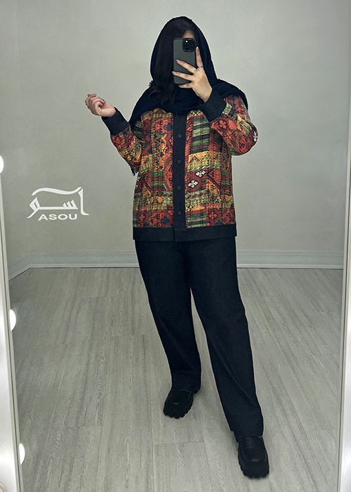 - جنس پارچه : جین گرم بالا و ژاکارد برجسته