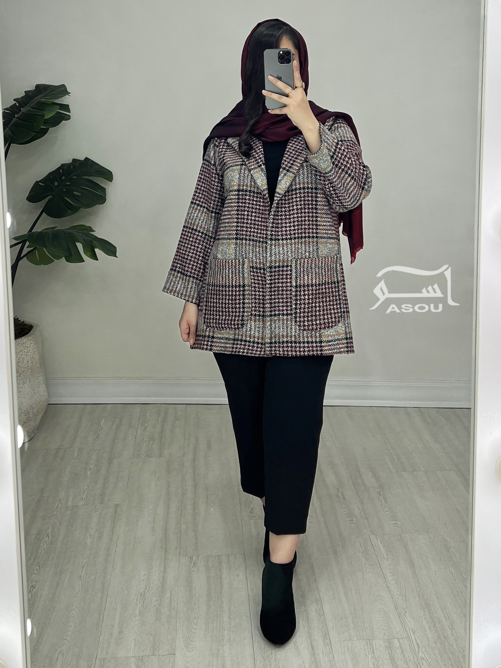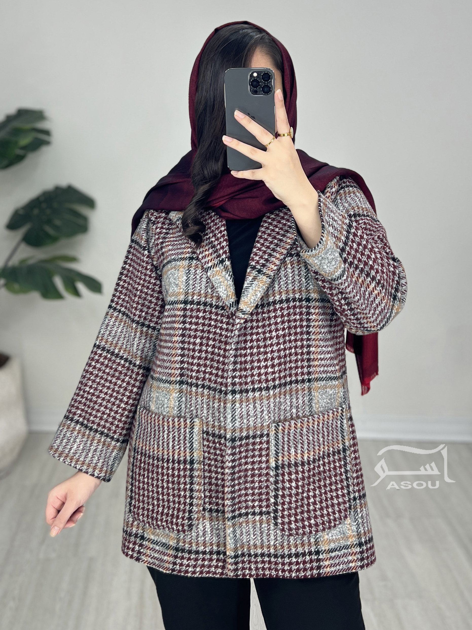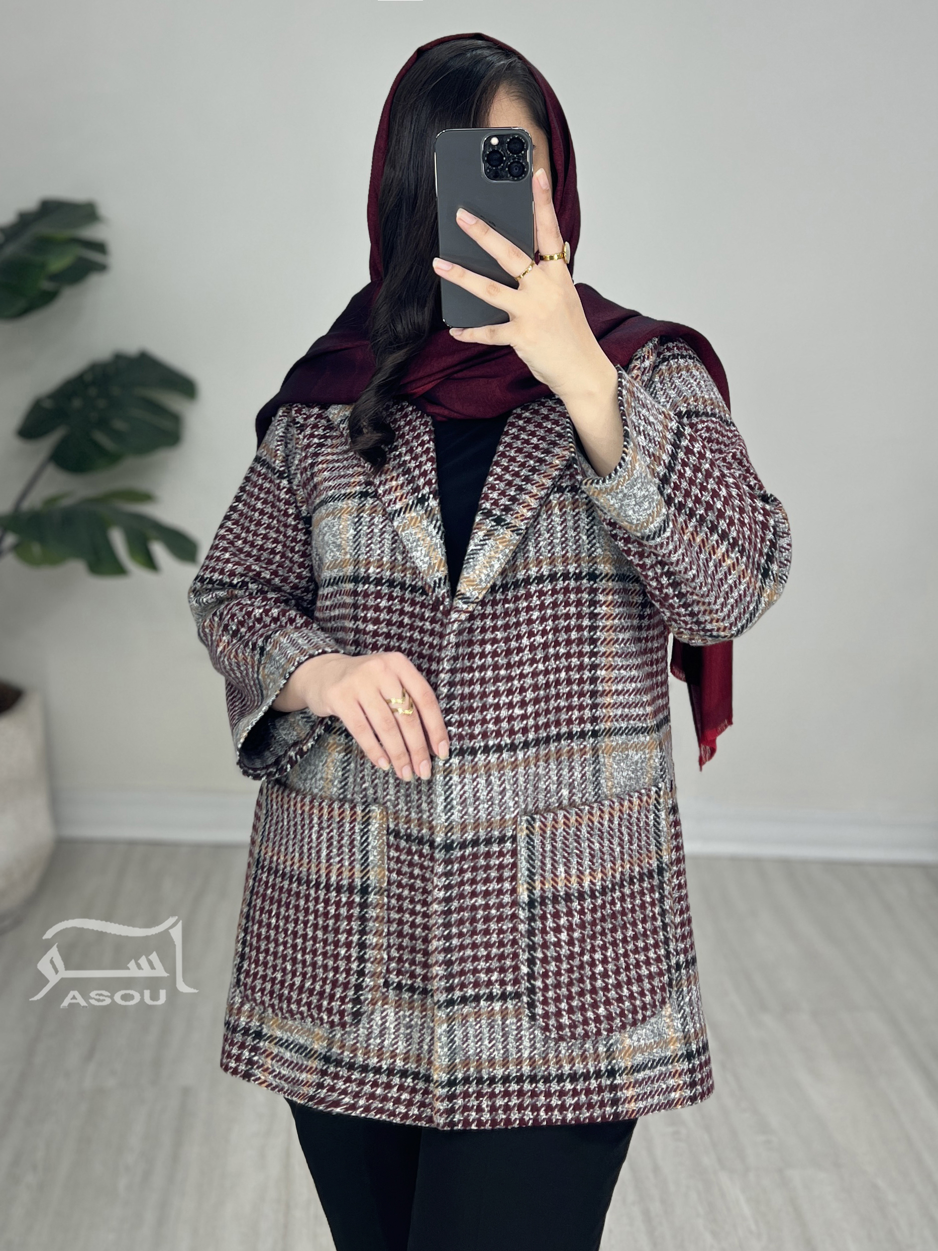 کت شانل چهارخونه طوسی زرشکی کد 880