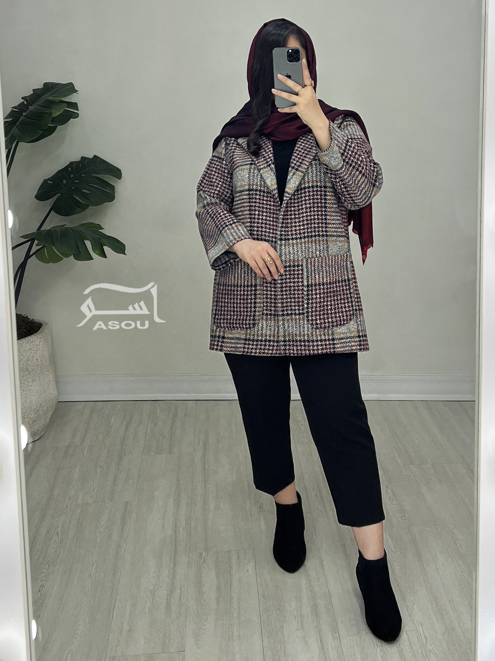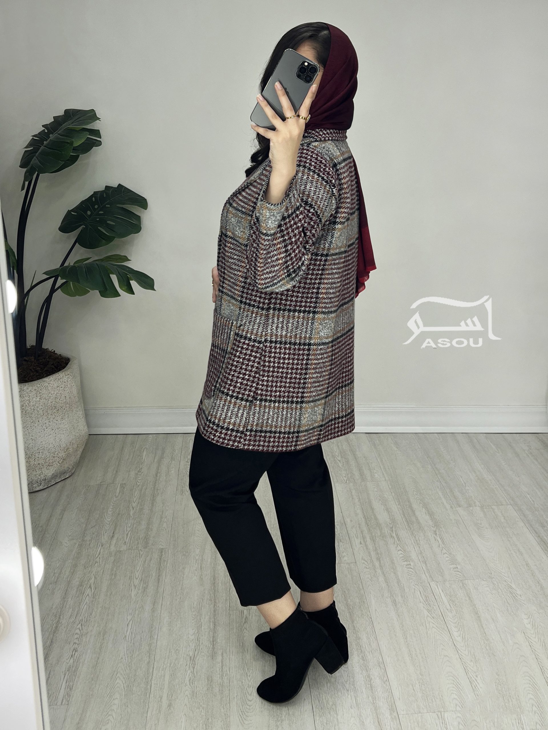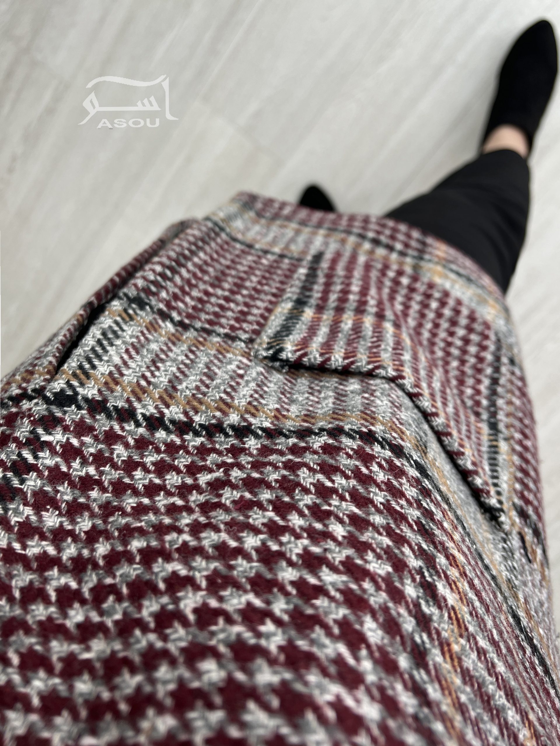 کت شانل چهارخونه طوسی زرشکی کد 880