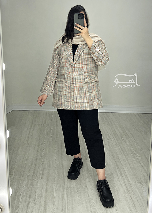 کت چهارخونه کرم پاییزه کد 878